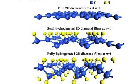 (a) 層數(shù)n=1時,表面未功能化、半氫化、兩側氫化的二維(110)金剛石結構