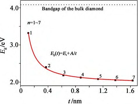 (b) 氫化(110)金剛石帶隙隨著厚度變化的函數(shù)關系[14]