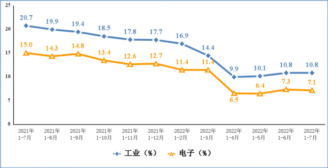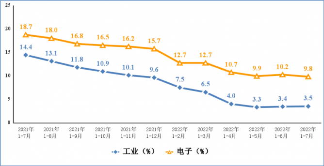 圖1 電子信息制造業(yè)和工業(yè)增加值累計(jì)增速