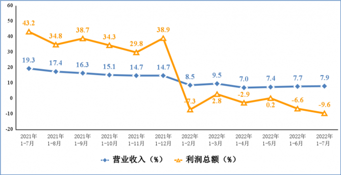 圖3 電子信息制造業(yè)營業(yè)收入、利潤總額累計(jì)增速