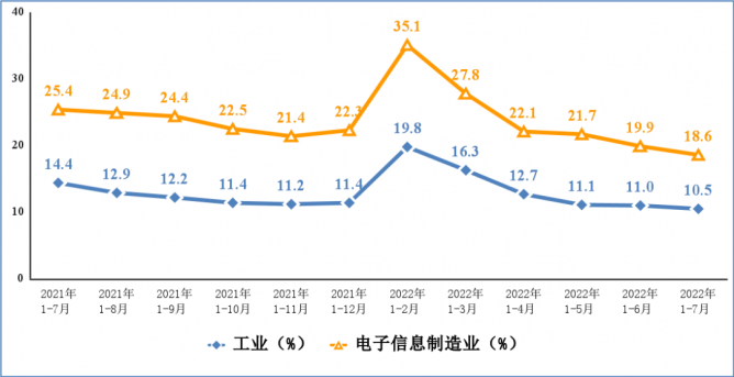 1—7月份,電子信息制造業(yè)固定資產(chǎn)投資同比增長18.6%,比同期工業(yè)投資增速高8.1個(gè)百分點(diǎn),但比高技術(shù)制造業(yè)投資增速低4.3個(gè)百分點(diǎn)。