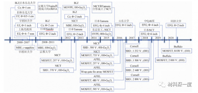β- Ga2O3單晶、外延、器件發(fā)展時(shí)間線