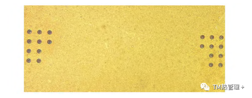 本實(shí)驗(yàn)采用高熱導(dǎo)率的金剛石作為載片,金剛石載片由中國電子科技集團(tuán)公司第十三研究所專用集成電路重點(diǎn)實(shí)驗(yàn)室提供,厚度為 0.3 mm,熱導(dǎo)率為2000 W/ (m·K),表面粗糙度在 2nm 以內(nèi),達(dá)到國內(nèi)領(lǐng)先水平,金剛石載片照片如圖 3 所示。由于金剛石本身是絕緣材料,利用通孔電鍍方式實(shí)現(xiàn)導(dǎo)通接地,同時(shí)解決了金剛石表面可焊性鍍層的制備問題,金剛石載片與 Au80Sn20 焊料潤濕性良好,空洞率控制在 5%以內(nèi)。