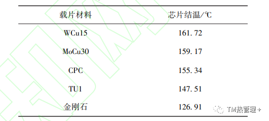 表 3 不同載片材料封裝的芯片結(jié)溫