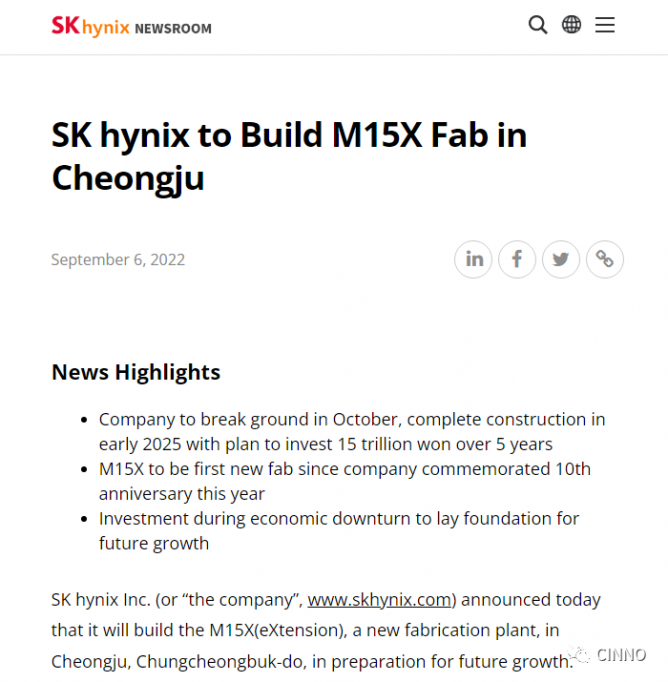SK海力士為擴大現(xiàn)有M15工廠,將推進M15X工廠建設。預計下月開始動工,目標是2025年初完工。為配合未來存儲器半導體市場的反彈,適時增加供應量,而展開先發(fā)制人的投資。SK海力士9月6日宣布,為確保未來業(yè)績增長的基礎,將在忠清北道清州工廠建設新的半導體生產(chǎn)工廠M15X(eXtension)。