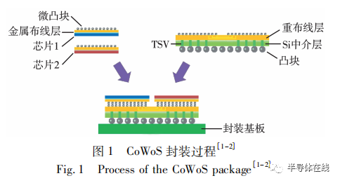 CoWoS 封裝的過程如下: 首先,制備好需要進行封裝的芯片,芯片的正面有微凸塊,背面磨薄,將已知良品芯片 ( known good die,KGD) 切割待用,無需封裝; 之后,在一片裸晶圓上進行TSV、重布線層及微凸塊的布局,將晶圓背面減薄并制作好凸塊,制成無源 Si 中介層; 然后將 KGD倒裝、對準,與 Si 中介層面對面鍵合,再將整體通過凸塊與封裝基板相連。CoWoS 封裝的具體過程如圖 1 所示。