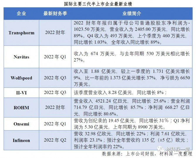 從披露的最新業(yè)績看,主要企業(yè)業(yè)績均表現(xiàn)為增長。由于國外財報披露要求的不同,上市公司會計年度周期可自行規(guī)定,下表統(tǒng)計了主要公司最新披露的業(yè)績情況。整體上看,雖然受到全球疫情及其他干擾因素影響,各公司業(yè)績均表現(xiàn)為增長,且管理層對可預(yù)見期限內(nèi)的業(yè)績均表示“預(yù)增”,相關(guān)公司業(yè)績預(yù)期在未來一段時間內(nèi)依舊處于上升通道。Transphorm公司已經(jīng)連續(xù)9個季度實現(xiàn)創(chuàng)紀(jì)錄的產(chǎn)品收入,各種功率轉(zhuǎn)換應(yīng)用的GaN器件出貨量增加,此外,Transphorm還宣布其獲得了他們迄今為止最大的生產(chǎn)訂單—筆記本電腦產(chǎn)品適配50萬顆GaN充電器件訂單;Navitas預(yù)計全年營收仍將較去年翻倍,正加速GaN第四代IC的開發(fā),布局除手機(jī)外的太陽能、數(shù)據(jù)中心、電動車與儲能市場,GaN IC產(chǎn)品迄今已出貨超過5000萬顆;II-VI目前積壓訂單(在手訂單)達(dá)21億美元。