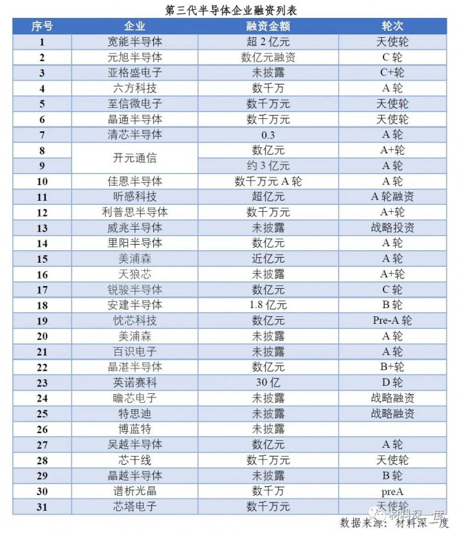 (二)30家企業(yè)獲得投資,第三代半導(dǎo)體仍是資本風(fēng)口