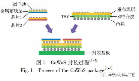 CoWoS 封裝的過(guò)程如下: 首先,制備好需要進(jìn)行封裝的芯片,芯片的正面有微凸塊,背面磨薄,將已知良品芯片 ( known good die,KGD) 切割待用,無(wú)需封裝; 之后,在一片裸晶圓上進(jìn)行TSV、重布線(xiàn)層及微凸塊的布局,將晶圓背面減薄并制作好凸塊,制成無(wú)源 Si 中介層; 然后將 KGD倒裝、對(duì)準(zhǔn),與 Si 中介層面對(duì)面鍵合,再將整體通過(guò)凸塊與封裝基板相連。CoWoS 封裝的具體過(guò)程如圖 1 所示。