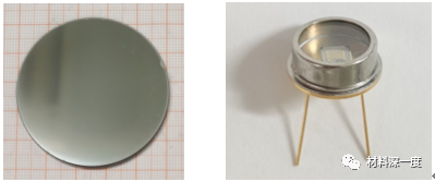 中科院半導(dǎo)體所制備的2英寸異質(zhì)外延金剛石晶圓(左)和深紫外探測器(右)