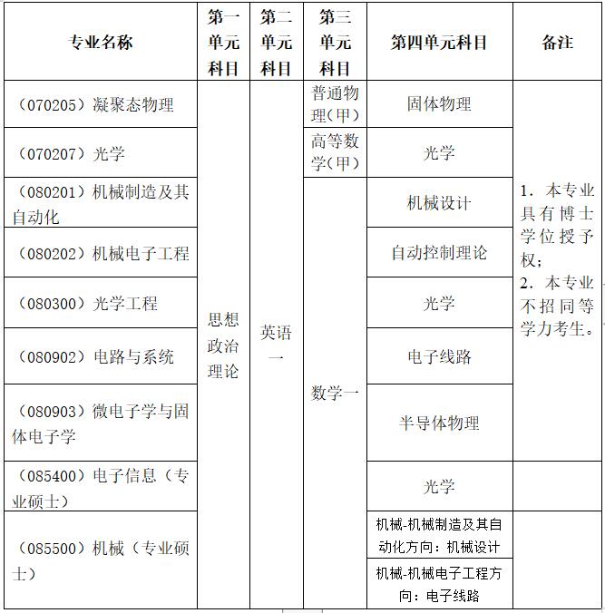 本專業(yè)招收光學(xué)工程、光學(xué)儀器、精密機(jī)械及儀器、生物醫(yī)學(xué)儀器、光電技術(shù)以及相關(guān)專業(yè)的大學(xué)本科畢業(yè)生。
