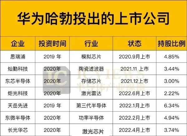 華為哈勃投資的7家半導(dǎo)體公司上市(圖源:半導(dǎo)體產(chǎn)業(yè)縱橫)