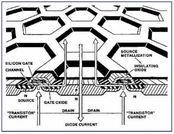 功率MOSFET最大的運行優(yōu)勢之一是:當達到ESD超高輸入電阻時(典型值> 4 x 109 ohms),它會關閉。功率MOSFET的柵極可以視為一個低電壓(HEXFET器件電壓為+ 20V)低泄露的電容。如圖1所示,電容器極板主要由硅柵極和源極金屬化形成。電容器介質是氧化硅柵極絕緣。