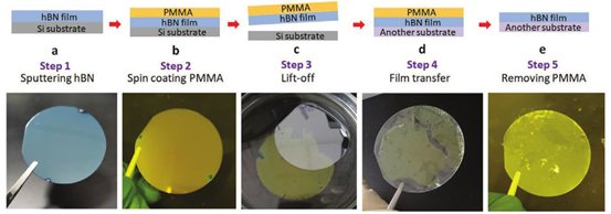 圖1 兩英寸hBN薄膜的剝離和轉移過程
