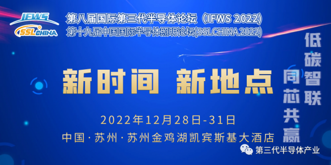 一年一度行業(yè)盛會(huì),第八屆國(guó)際第三代半導(dǎo)體論壇(IFWS 2022)&第十九屆中國(guó)國(guó)際半導(dǎo)體照明論壇(SSLCHINA 2022)將于12月28日-31日(28日?qǐng)?bào)到)在蘇州金雞湖凱賓斯基大酒店召開(kāi)。