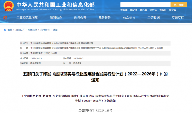 11月1日,工業(yè)和信息化部、教育部、文化和旅游部等五部門聯(lián)合印發(fā)的《虛擬現(xiàn)實(shí)與行業(yè)應(yīng)用融合發(fā)展行動(dòng)計(jì)劃(2022—2026年)》提出,到2026年,我國(guó)虛擬現(xiàn)實(shí)產(chǎn)業(yè)總體規(guī)模超過(guò)3500億元,虛擬現(xiàn)實(shí)終端銷量超過(guò)2500萬(wàn)??梢?jiàn),虛擬現(xiàn)實(shí)產(chǎn)業(yè)正迎來(lái)新一輪的發(fā)展風(fēng)口。