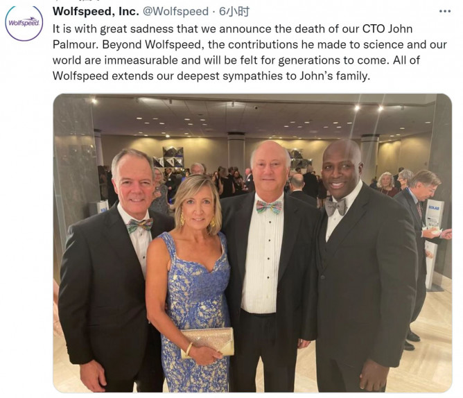 Wolfspeed官方今晨發(fā)布消息稱:“我們懷著無比悲痛的心情在這里宣布,Wolfspeed 聯(lián)合創(chuàng)始人兼首席技術(shù)官、美國國家工程院院士 John Palmour 博士與世長辭。Wolfspeed 全體成員對于 John Palmour 博士的逝世沉痛悼念、深切緬懷。自始至終, John Palmour 博士的智慧、幽默、正直、熱情,一直在激勵(lì)著我們不斷前進(jìn)。作為公司聯(lián)合創(chuàng)始人與科技專家,John Palmour 博士為推進(jìn)眾多應(yīng)用與產(chǎn)業(yè)采用碳化硅披荊斬棘并不斷取得成功,對于未來更美好的生活產(chǎn)生深遠(yuǎn)影響。John Palmour 博士對于科學(xué)領(lǐng)域和世界的重大貢獻(xiàn)不可估量、澤披后世。最后,代表公司管理團(tuán)隊(duì)與員工團(tuán)隊(duì),對于 John Palmour 博士的家人致以最深切的慰問。”