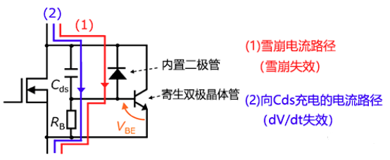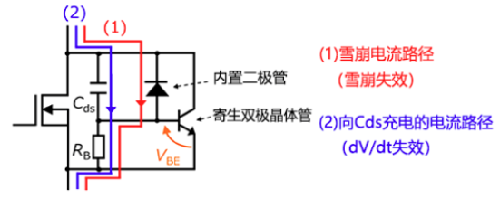 MOSFET的dV/dt失效電流路徑示意圖(藍(lán)色部分)