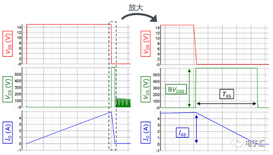 雪崩測(cè)試中MOSFET的電壓和電流波形