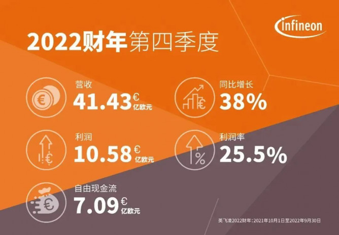 11月16日,英飛凌官微公布了2022財(cái)年第四季度和全年的業(yè)績(均截至2022年9月30日)。