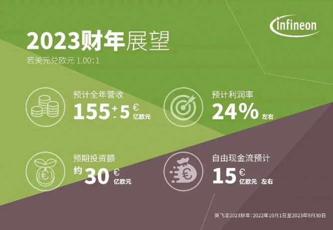 英飛凌預(yù)計(jì)2023財(cái)年第一季度營收將達(dá)到40億歐元左右,在此基礎(chǔ)上,利潤率預(yù)計(jì)將達(dá)到25%左右。
