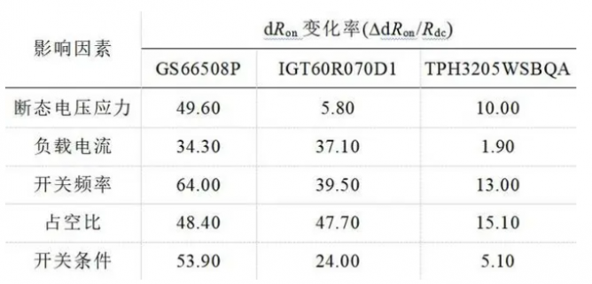 圖2 動態(tài)導通電阻影響因素作用效果對比