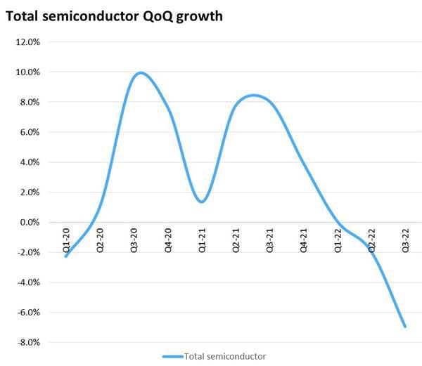 在創(chuàng)紀(jì)錄的運(yùn)行之后,半導(dǎo)體市場(chǎng)已經(jīng)降溫,消費(fèi)者信心減弱,導(dǎo)致第三季度的歷史性下跌。由于預(yù)期下半年消費(fèi)者的需求會(huì)增加,半導(dǎo)體的銷售也隨之增加。從2002年到2021年,長(zhǎng)期平均季度增速為8%。