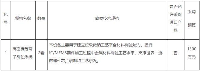 項目名稱:北京大學集成電路學院高密度等離子刻蝕系統(tǒng)采購項目