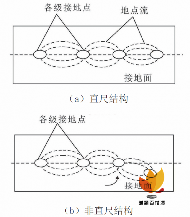圖1 地線的直尺結(jié)構(gòu)與非直尺結(jié)構(gòu)