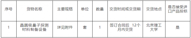 項(xiàng)目名稱:北京理工大學(xué)晶圓級(jí)量子探測(cè)材料制備設(shè)備采購(gòu)