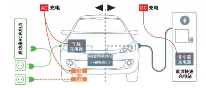 有兩種類(lèi)型的充電—車(chē)載和非車(chē)載,該定義涉及在哪里進(jìn)行直流電轉(zhuǎn)換。車(chē)載充電器將交流電從墻上的插座或充電點(diǎn)引入車(chē)輛,由車(chē)載充電器將其轉(zhuǎn)換為直流電,為電池充電。相反,非車(chē)載充電器在內(nèi)部轉(zhuǎn)換為直流電,然后向車(chē)輛提供直流電,直接為電池充電。