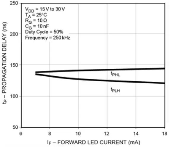圖3表明,傳播延遲取決于LED電流。典型PWD是+4 ns / mA 。