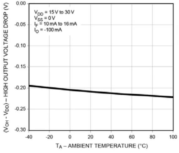 采用P溝道MOSFET作為上拉與雙極性晶體管相比,有兩個優(yōu)點:第一,低 RDS(ON)可實現(xiàn)最小的內(nèi)部電壓降,為給定的VCC-VEE提供較大的接通電壓。其次,開關(guān)延遲比多級PNP晶體管小。圖7是FOD3120的壓降曲線。