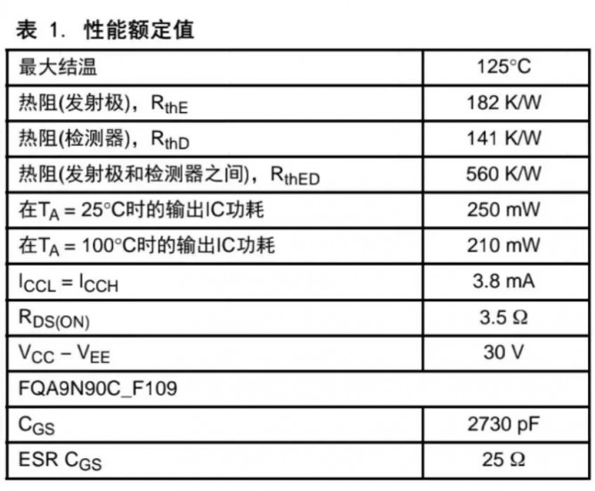 本應(yīng)用指南重點介紹了隔離門驅(qū)動電路的可靠性和性能優(yōu)化的一些方法。采用通用的公式計算柵極充電傳輸功率,該功率供應(yīng)給驅(qū)動MOSFET(FQA9N90C_F109)。然而,該分析并沒有描述驅(qū)動器IC內(nèi)的功耗。利用等式(8)計算FOD3120的輸出功率MOSFET的功耗,是RDS(ON)、 Vcc 、驅(qū)動МOSFET的柵極電容和柵極等效串聯(lián)電阻(ESR)的函數(shù)。