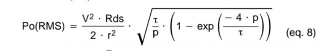 在輸出處的結(jié)溫增加是熱阻和輸出驅(qū)動器的RMS功率產(chǎn)品。在等式(7)中給出計算RMS功率的等式。變量p,是功率脈沖平均期間的時長。圖14說明在每個LED轉(zhuǎn)換時,都存在驅(qū)動電流脈沖。工作頻率定義為1/(2 x p )。該定義通過平衡分析: