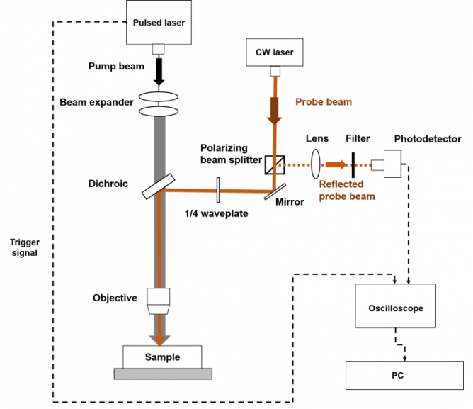 圖3:傳統(tǒng)的瞬態(tài)熱反射法(TTR)系統(tǒng)示意圖