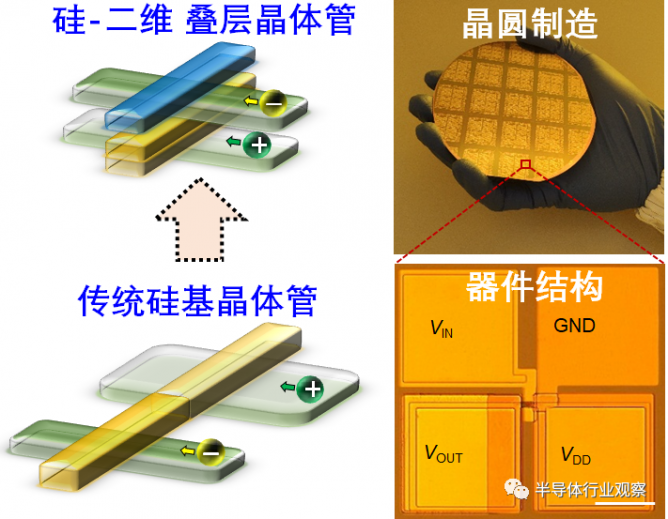 圖:硅基二維疊層晶體管的概念、晶圓級制造與器件結(jié)構(gòu)