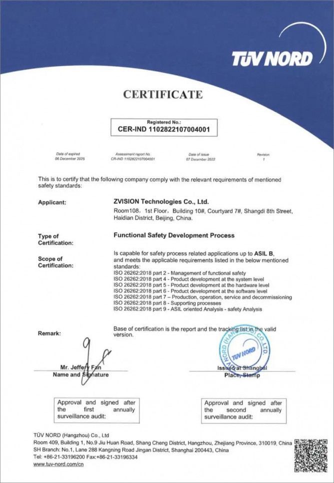 自成立以來,一徑科技始終將產品質量與安全放在首要位置,將安全理念貫穿于激光雷達產品的研發(fā)、測試、生產、運營、服務的全過程中,此前已相繼獲得 IATF16949、ISO9001 等多項權威質量管理體系認證。本次認證的高效快速通過,既是對一徑高品質激光雷達產品的認可,也是一徑科技高水平功能安全團隊和深厚功能安全開發(fā)經驗積累的體現(xiàn)。