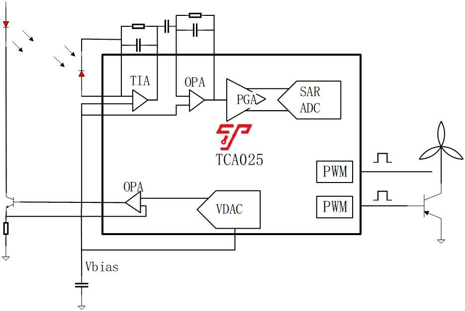 TCA025集成ARM Cortex M0低功耗內核,片上除了集成64 KB eFlash和8KB SRAM,以及標準的SPI,UART,I2C,LIN通信接口外,針對傳感器應用開發(fā)了以下特色外設: