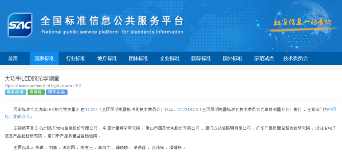 近日,國星光電參與制定的國家標準GB/T 42219-2022《大功率LED的光學測量》由國家市場監(jiān)督管理總局國家標準化管理委員會正式發(fā)布,全國照明電器標準化技術(shù)委員會歸口,全國照明電器標準化技術(shù)委員會光輻射測量分會執(zhí)行,本標準將于2023年7月1日正式實施。
