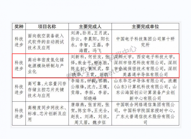 來自深圳大學(xué)、西安電子科技大學(xué)、深圳市倍思科技有限公司、深圳市金城保密技術(shù)有限公司、深圳英嘉通半導(dǎo)體有限公司研究團(tuán)隊,以劉新科,何世友、張懌、敖金平等主要完成人的《高功率密度氮化鎵電源模塊研究與產(chǎn)業(yè)化》項(xiàng)目,獲科技進(jìn)步類二等獎。