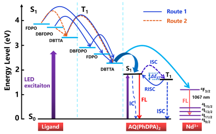 圖3. NdⅢ 配合物與AQ(PhDPA)2間的能量傳遞示意圖