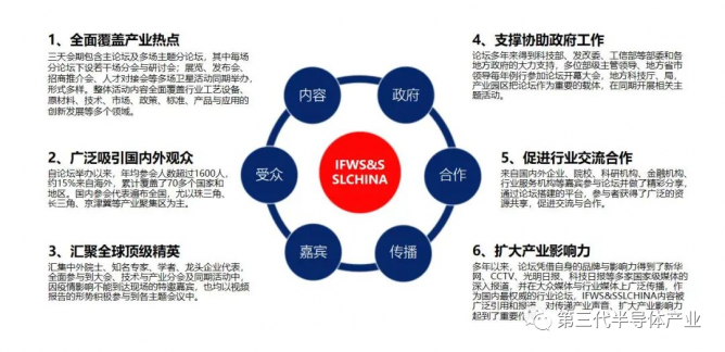 自2015年開始,IFWS與SSLCHINA同期舉行,兩大國際盛會強(qiáng)強(qiáng)聯(lián)合,內(nèi)容全面覆蓋行業(yè)工藝裝備、原材料、技術(shù)、產(chǎn)品與應(yīng)用各環(huán)節(jié),吸引了大量光電子、電力電子和微波射頻領(lǐng)域的技術(shù)人才和項目團(tuán)隊,融合聚集了產(chǎn)、學(xué)、研、用、政、金多個層面的資源,通過論壇搭建的平臺,實現(xiàn)信息互通和資源聚集,共同推動我國半導(dǎo)體產(chǎn)業(yè)的發(fā)展。
