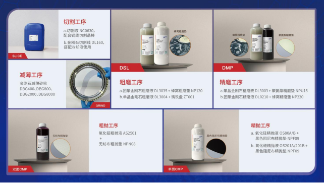 深圳中機新材料有限公司「中機新材」作為參展商參與本次論壇,主要展出的產(chǎn)品是率先在行業(yè)內(nèi)推進落地并實現(xiàn)客戶批量供應的碳化硅晶圓襯底切研磨拋解決方案,包括碳化硅切割段的切割鋼線及砂漿助劑方案、研磨段的替代碳化硼+鑄鐵盤的團聚液+蜂窩墊方案、DMP的聚晶液+聚氨酯墊方案,雙面CMP的氧化鋁液+無紡布墊方案、單面CMP的氧化硅液+阻尼布墊方案等。確保滿足客戶在第三代半導體晶圓研磨拋光各工段加工參數(shù)的前提下,結合客戶的實際情況進行有針對性的持續(xù)優(yōu)化,幫助客戶不斷提升加工效率,有效減短加工時長,提升良品率;在長期被國外壟斷的關鍵材料應用環(huán)節(jié)中,逐步實現(xiàn)國產(chǎn)替代,真正為客戶做到降本增效。