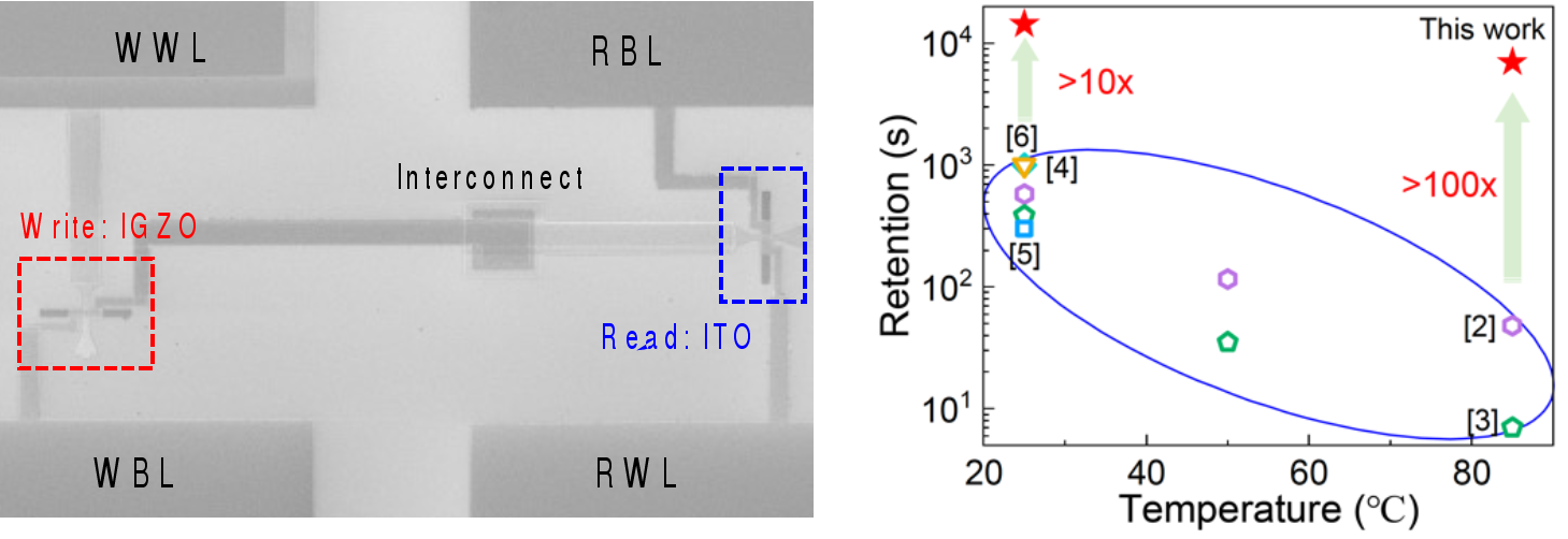 圖4. 基于超薄氧化物半導(dǎo)體的2T0CDRAM結(jié)構(gòu)與電學(xué)特性