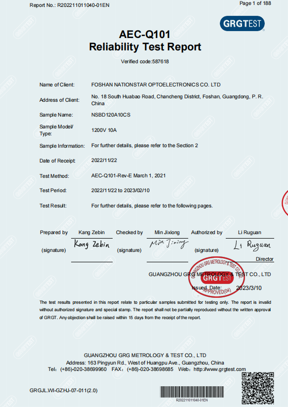 通過認(rèn)證的國星光電SiC-SBD器件采用TO-247-2L封裝形式,在長達(dá)1000小時的高溫、高濕等惡劣環(huán)境下驗證,仍能保持正常穩(wěn)定的工作狀態(tài),可更好地適應(yīng)復(fù)雜多變的車載應(yīng)用環(huán)境,具備高度的可靠性、安全性和穩(wěn)定性。