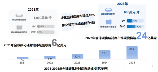 報(bào)告指出,碳化硅器件優(yōu)勢(shì)明顯,EV和光伏產(chǎn)業(yè)需求高速增長(zhǎng),碳化硅襯底成本的持續(xù)降低是下游終端市場(chǎng)提高滲透的關(guān)鍵。當(dāng)前碳化硅襯底的產(chǎn)能缺口巨大,海外企業(yè)擴(kuò)產(chǎn)引領(lǐng)全球,未來(lái)5年內(nèi)碳化硅襯底仍存在超7倍的產(chǎn)能缺口,海外碳化硅企業(yè)已經(jīng)進(jìn)入1-10擴(kuò)產(chǎn)階段。2025年全球預(yù)計(jì)SiC襯底需求量預(yù)計(jì)超300萬(wàn)片。隨著國(guó)內(nèi)下游需求的蓬勃發(fā)展,中國(guó)亟需提升碳化硅制造能力。報(bào)告認(rèn)為,中國(guó)成為全球碳化硅產(chǎn)能中心的確定性極高,而實(shí)際制造能力仍存在巨大差距。