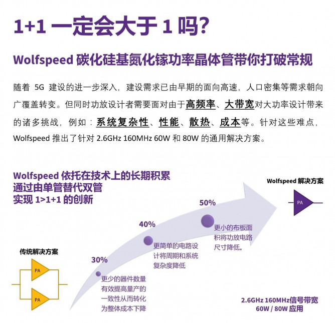 實現(xiàn)1>1+1的創(chuàng)新!Wolfspeed 碳化硅基氮化鎵功率晶體管,賦能蜂窩通信創(chuàng)新