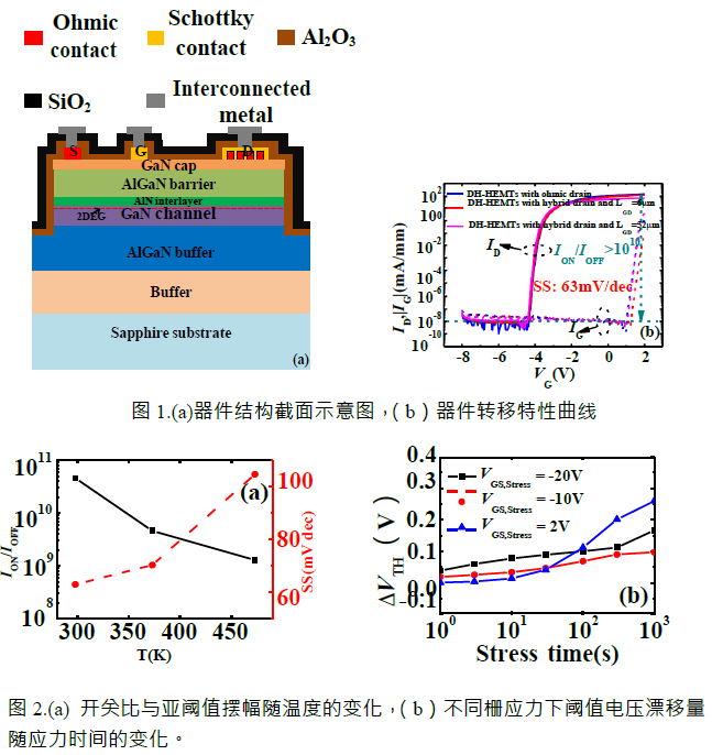 近年來,AlGaN/GaN/AlGaN 雙異質(zhì)結(jié)(DH)高電子遷移率晶體管(HEMT)由于其低漏電和低關態(tài)功耗而得到了廣泛的研究。通過優(yōu)化材料的結(jié)晶質(zhì)量和設計新穎的器件結(jié)構,提高了 DH-HEMT 的性能。雖然近年來對 DH-HEMT 的研究在耐壓和靜態(tài)功耗方面取得了很大的突破,但對 DH-HEMT 的動態(tài)特性和可靠性的研究相對較少。此外,還需要進一步提高 DH-HEMT 的擊穿電壓,降低功率損耗,以滿足電動汽車和充電設備等眾多應用的需求。然而,要制造出同時具備高擊穿電壓、低亞閾值擺幅、低漏電、低動態(tài)導通電阻退化和高可靠性的 DH-HEMT 是極其困難的。