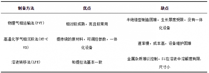 表2 幾種SiC單晶制備方法比較